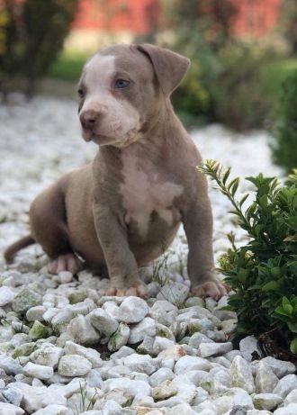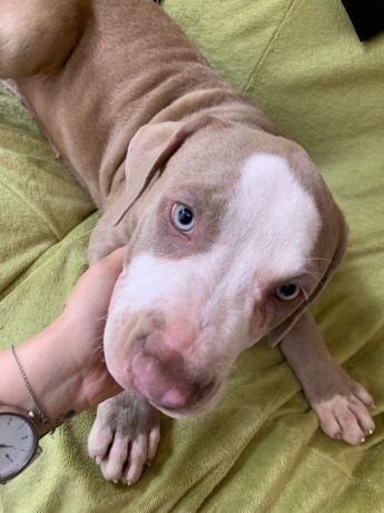 Puiut fetita Amstaff rasa pura. Varsta 3 luni. Toate vaccinurile la zi, pasaport, cip. Am cumparat patut, lesa, ham de toate. O dam deoarce nu o putem lua cu noi in Austria. Mai multe detalii