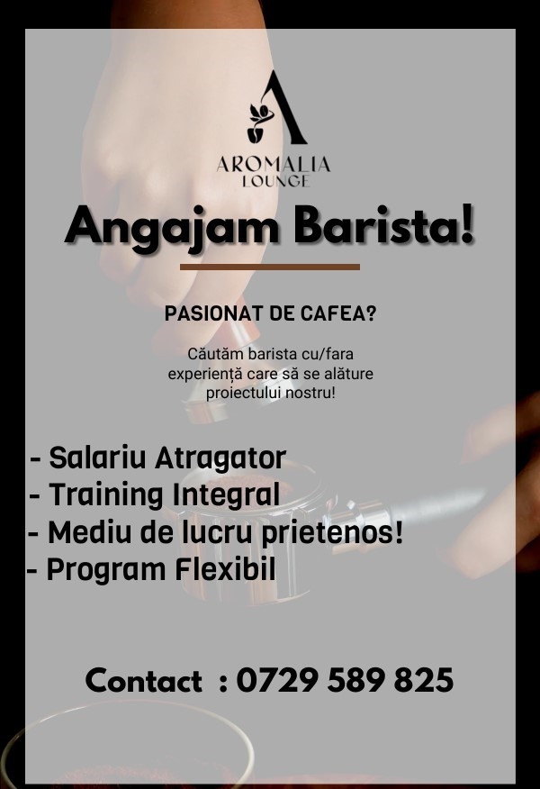 Daca esti o persoana responsabila, vibranta, energica, prietenoasa, pasionata de cafea si fiind un atuu valoros al unei comunitati intregi, Aromalia Lounge este mediul de lucru perfect pentru tine!
