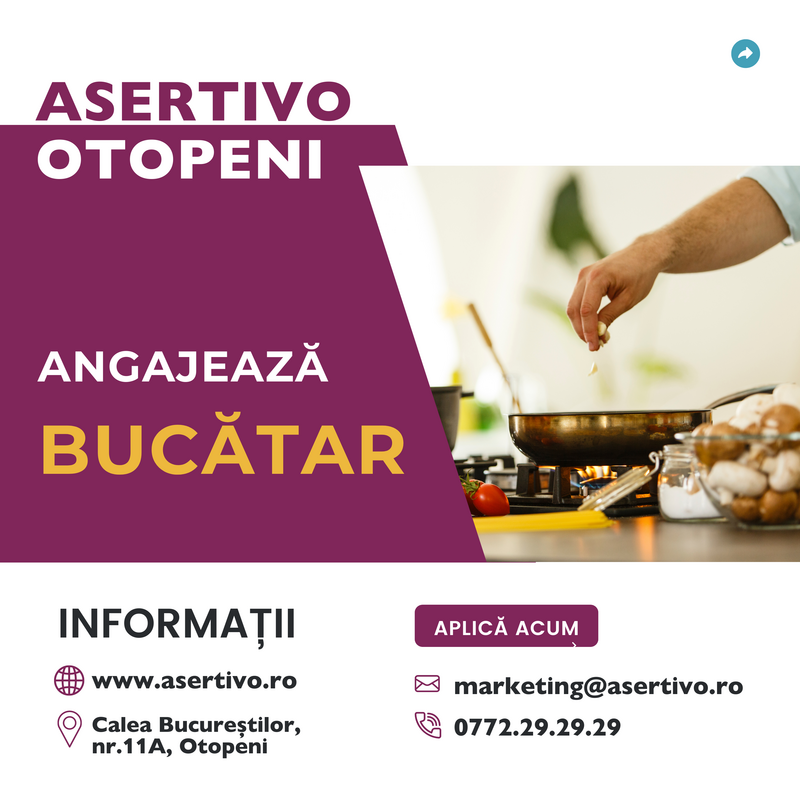 Centrul de ingrijire si recuperare medicala AsertivO angajeaza bucatar cu experienta. Oferim program flexibil, salariu in functie de experienta;