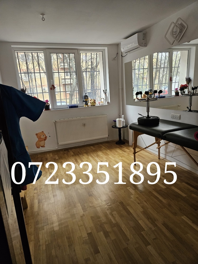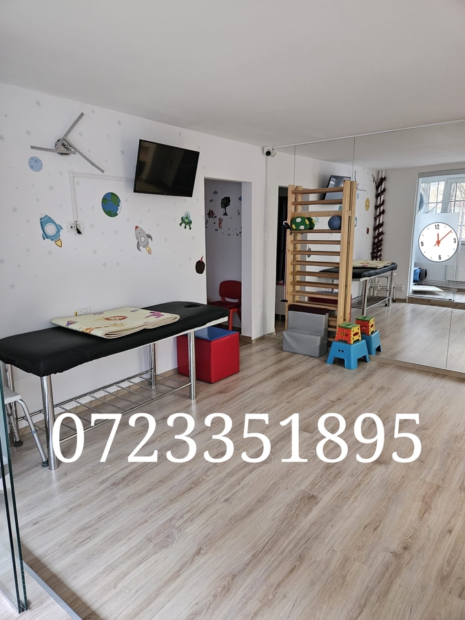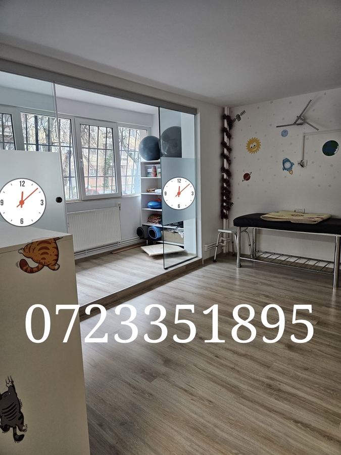 Propunem o colaborare avantajoasa prin punerea la dispozitie a unui cabinet de kinetoterapie pediatrica, autorizat si integral echipat, cu o suprafata de 74 mp, structurat in 3 camere si 2 grupuri sanitare, localizat in Sectorul 6, zona Militari-Veteranilor (langa iesirea de la metrou Lujerului).