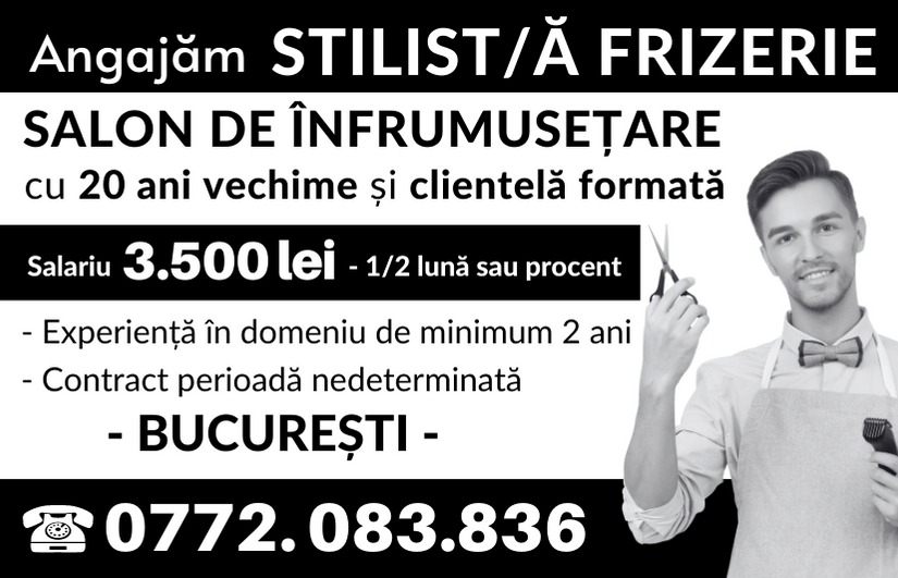 - Activitate de stilist/a frizerie in Bucuresti, zonele: Berceni, Vitan, Diham, Rahova