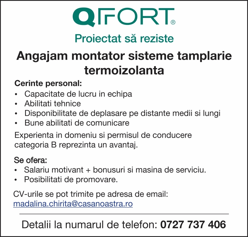Montator sisteme tamplarie termoizolanta pt QFort.