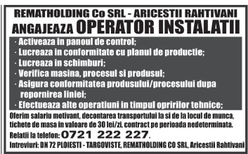 OPERATOR INSTALATII pentru REMATHOLDING Co SRL