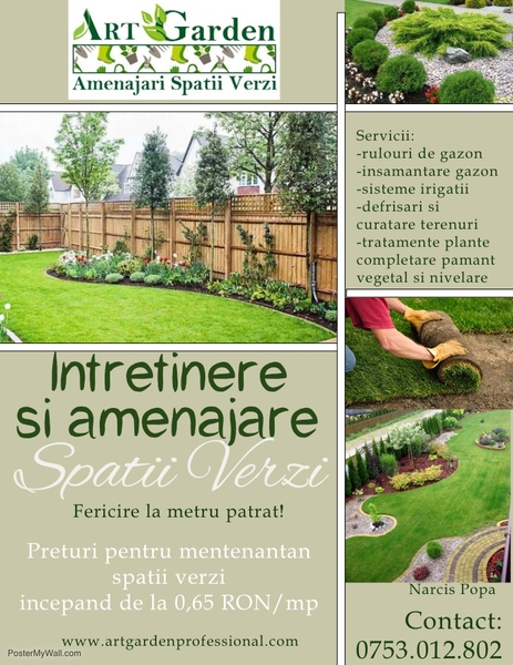 - Experienta pentru: taiere gazon, plantat gazon, plantat flori, tuns si toaletat copaci.
