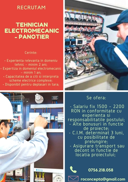 • Expertiza in domeniul electromecanic – minim 1 an;