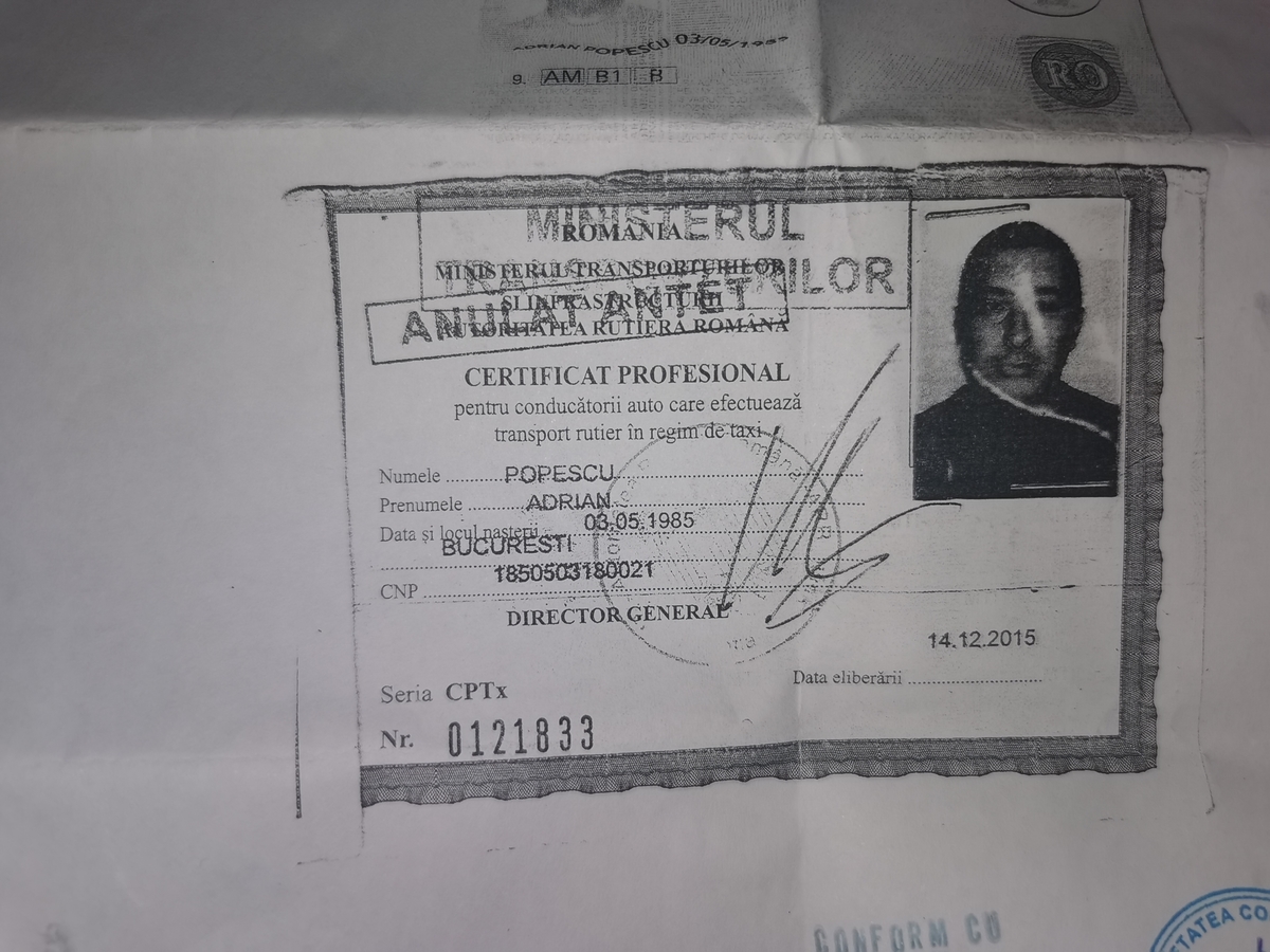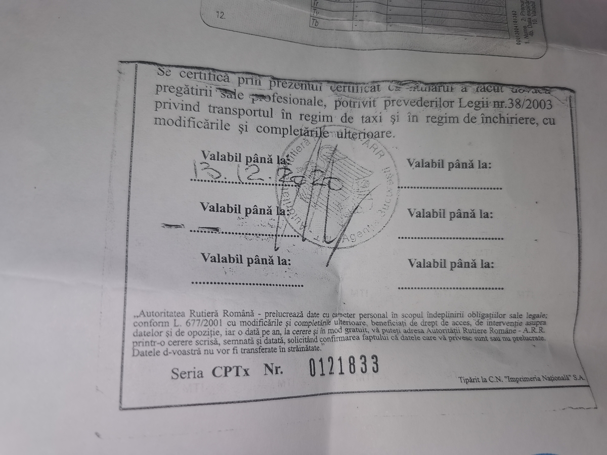 Atestat taxi pierdut