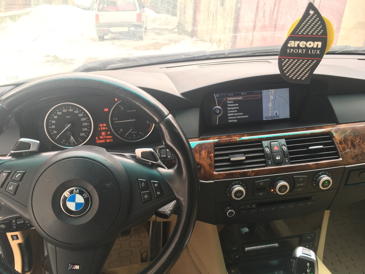 BMW E60 530XD, kit M, cutie viteze automata cu padele volan, navigatie cu HDD incorporat, boxe Harman Kardon, trapa electrica, scaune incalzite cu memorie, volan reglabil electric, cauciucuri Nokian WRD4 noi,