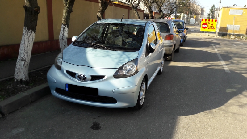 Toyota Aygo cutie automata, motor 1l benzina, 70 CP, culoare bleu ciel, 3 usi, inmatriculata in Romania, ITP 2020.