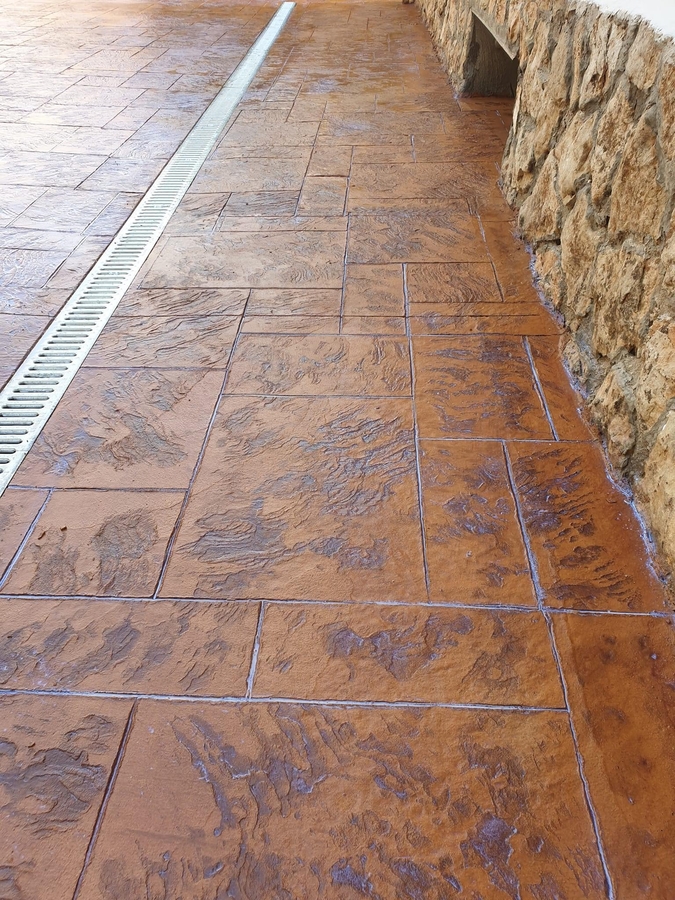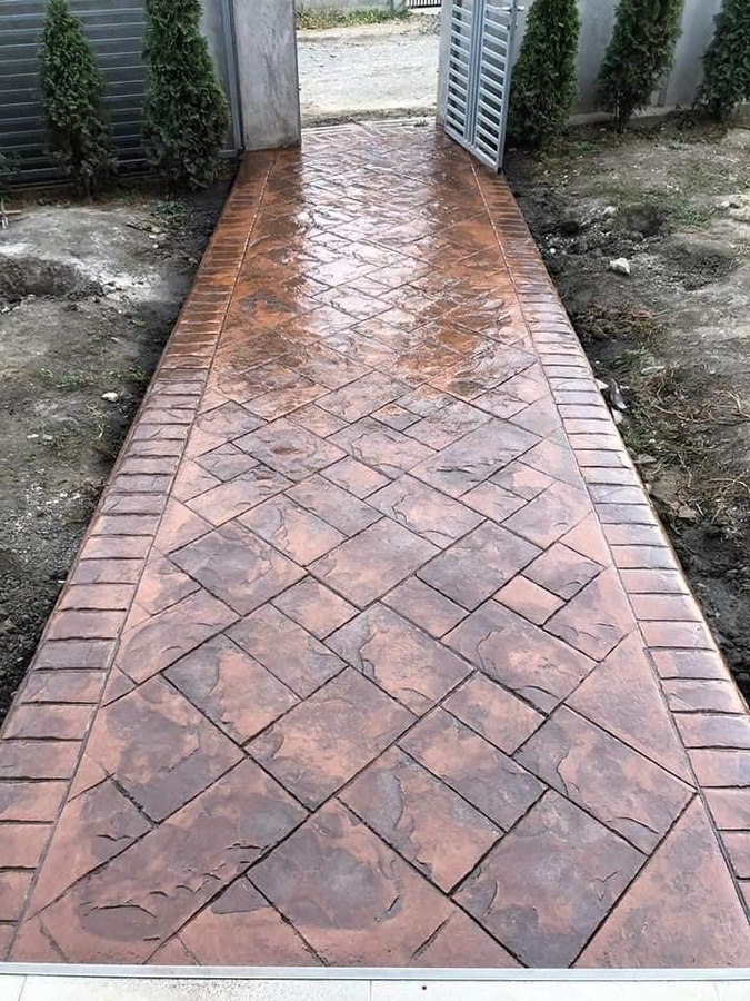 suntem o companie cu capital 100% romanesc si cu prezenta pe piata din romania de peste 10 ani. Oferim solutii personalizate de beton amprentat, beton elicopterizat, beton polimer si beton dezactivat, adaptate nevoilor fiecarui client venind in intampinarea dumneavoastra cu un raport calitate-pret excelent si garantie contractuala. Portofoliul nostru de lucrari este principala carte de vizita, bucurandu-ne de un numar considerabil de clienti care au apelat la serviciile noastre de beton amprentat, dezactivat, elicopterizat si polimer, garantand astfel executia unei lucrari bine efectuate. Avem o experienta vasta de aproximativ 10 ani de zile, o experienta capatata atat in strainatate cat si in Romania. Din 2019 suntem si pe piata din Romania, oferind servicii de Beton Amprentat in toata tara. Executam lucrari de pavare cu beton amprentat, cunoscut ca si beton decorativ, care are rolul de a imita intocmai diferite elemente decorative, respectiv: caramida, piatra de rau, piatra cubica sau chiar lemnul, etc. Ca sa te asiguri ca pavajele din beton amprentat rezista mult timp, consulta o echipa de specialisti si alege tipul potrivit de beton in functie de suprafata amenajata. Totodata, ai grija sa cureti si sa reimprospatezi periodic aspectul acestora lacuindu-le cu solutii speciale!