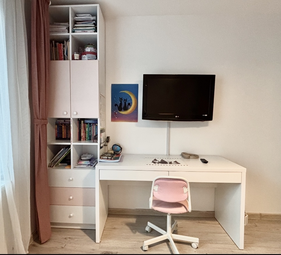 Birou, dulap, scaun Ikea alb/ roz pentru fete