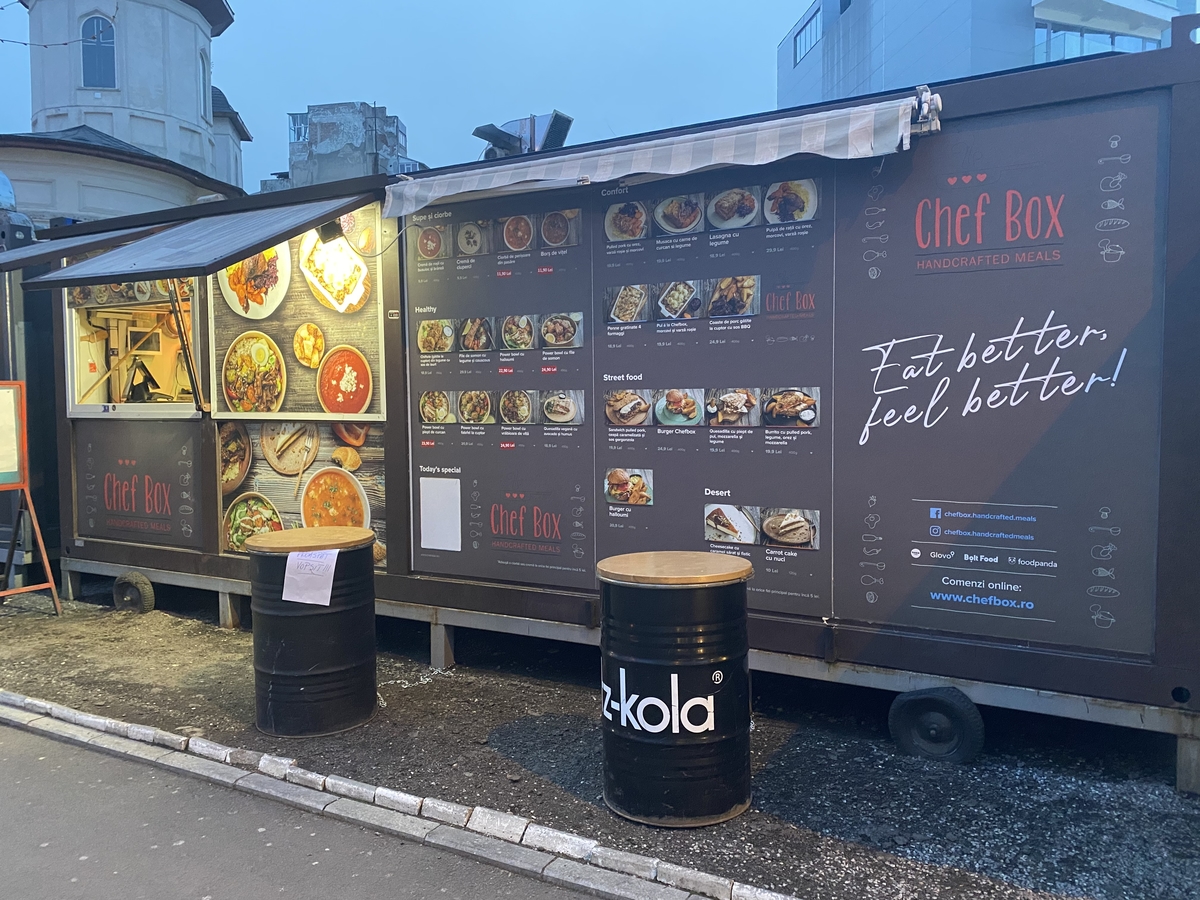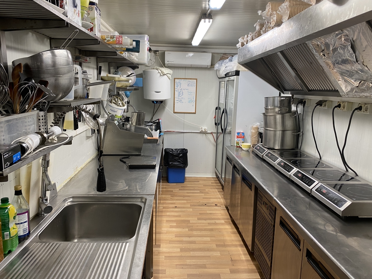 Vrei sa pornesti un business in Horeca? Poti incepe de maine cu o bucatarie utilata complet de tip food truck. Burgeri, salate, mancaruri gatite diverse - pe toate le poti produce in cele doua containere mobile. Nu ai nevoie decat de un spatiu de amplasare si de legatura la curent,