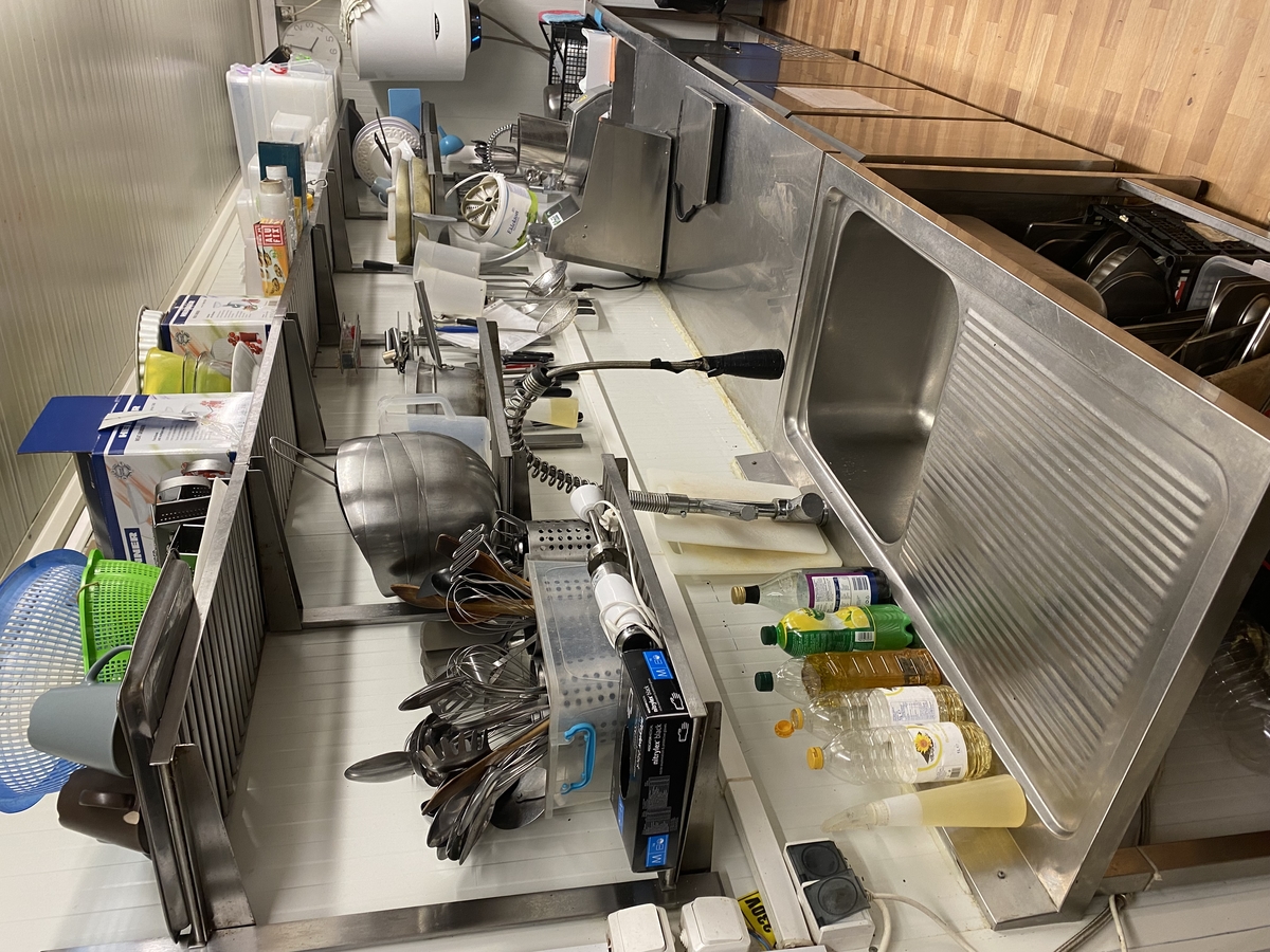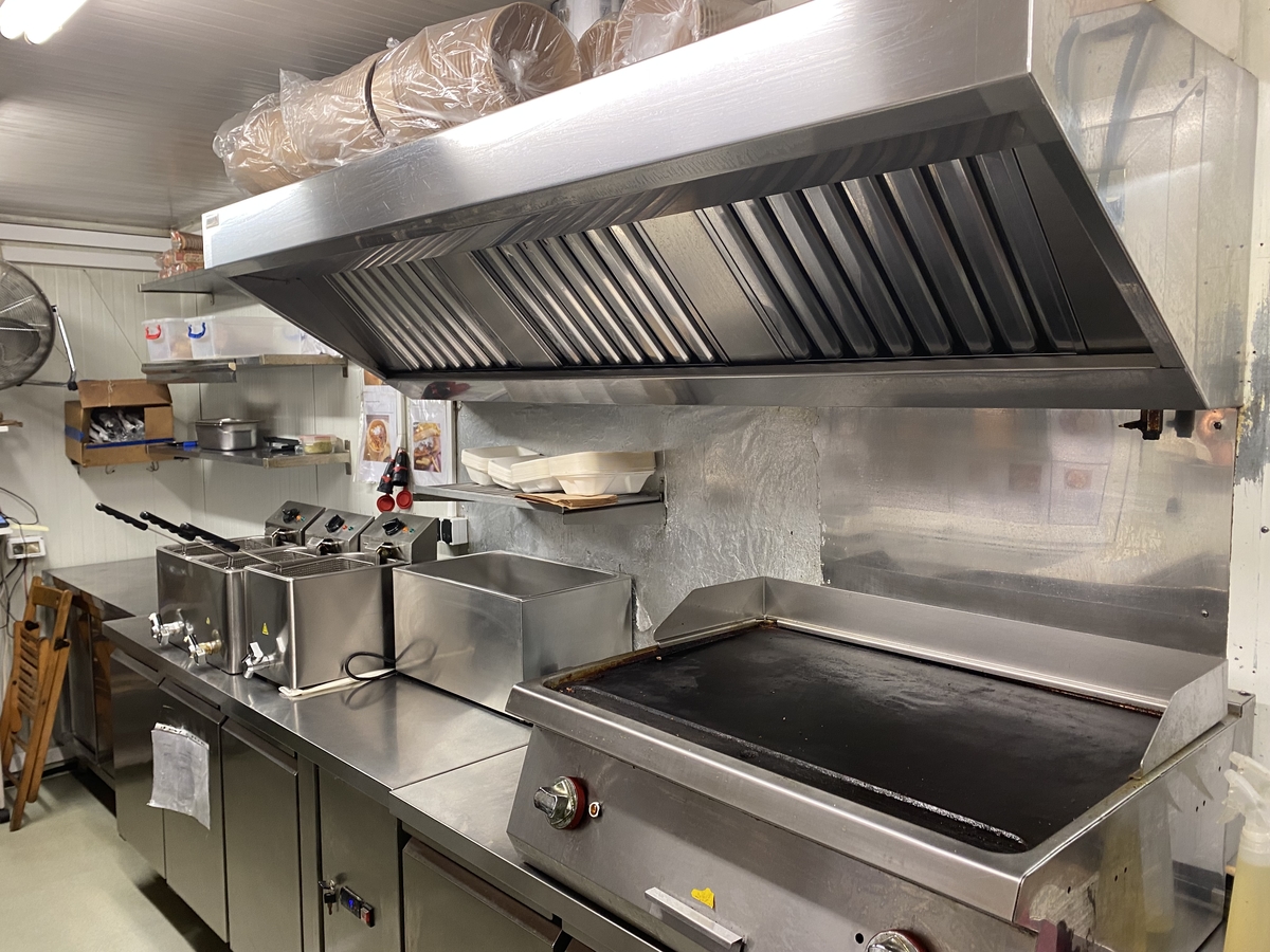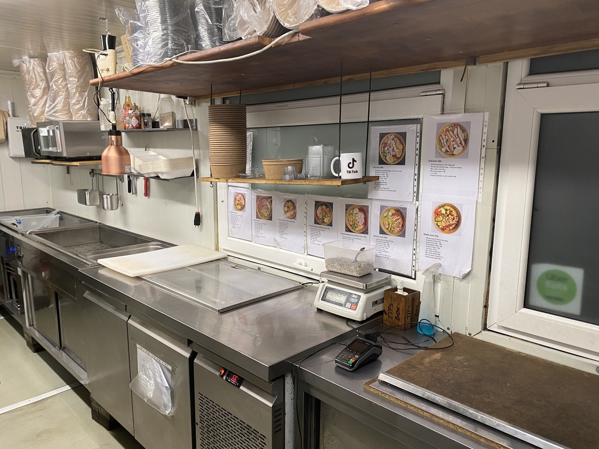 Bucataria este functionala si gata amenajata pentru a incepe activitatea, are nevoie de conexiune la electricitate, apa rece si canal. Aceasta poate produce intre 500-800 portii pe zi si functioneaza pentru livrari si take away. si take away.