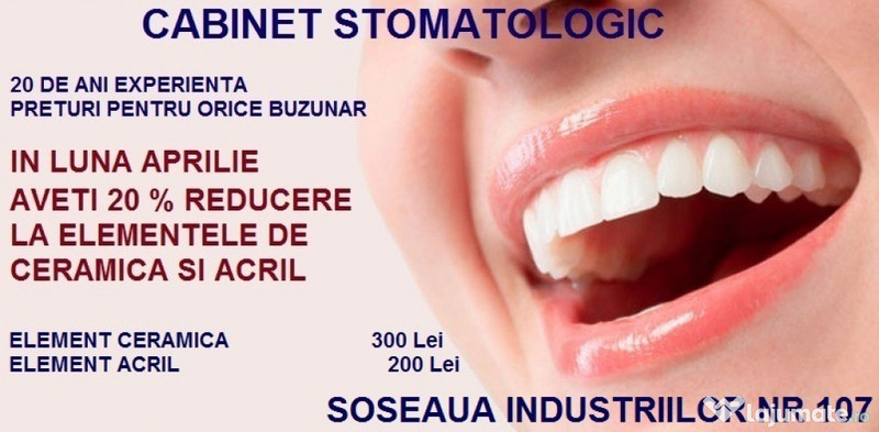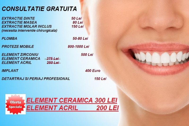 Oferta valabila in luna aprilie. Pentru cei din provincie oferim cazare gratuit 500 Lei elementul din zirconiu, 300 lei elementul din ceramica, 200 lei elementul din acril, facebook : novameddental,