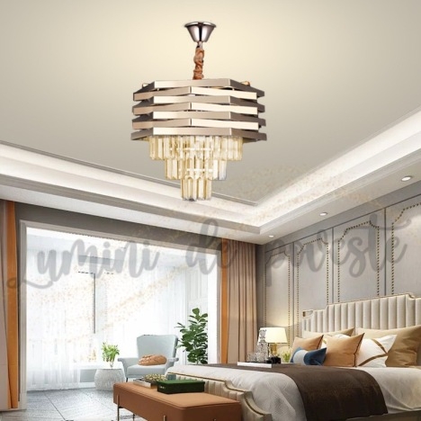 Candelabru, 6 x becuri E14 (nu sunt incluse), 40cm diamentru, Auriu Lucios + Cristale K9 CARACTERISTICI GENERALE /termeni-si-conditii/\" target=\"_blank\" rel=\"noopener\">Termeni si Conditii
