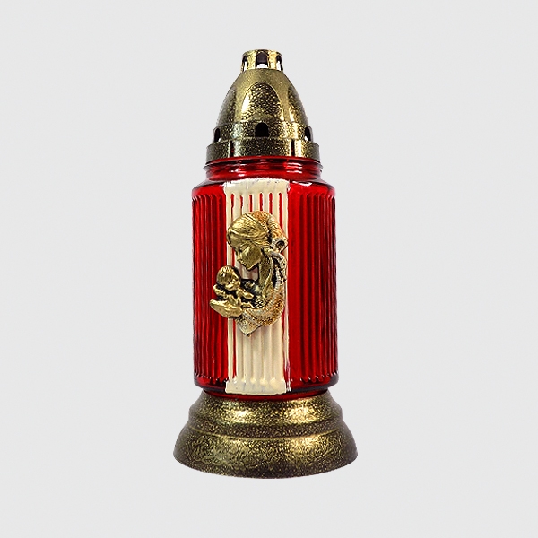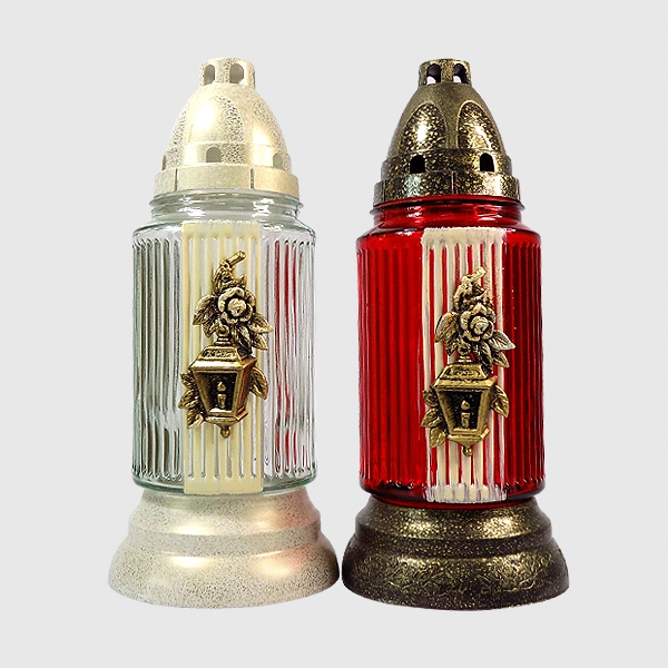 Candele din sticla cu capac si suport, de culoare rosie sau alba