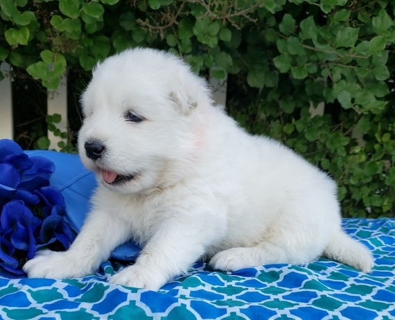 Pui de Samoyed de 12 saptamani pentru adoptie. Îi place să se joace cu copiii