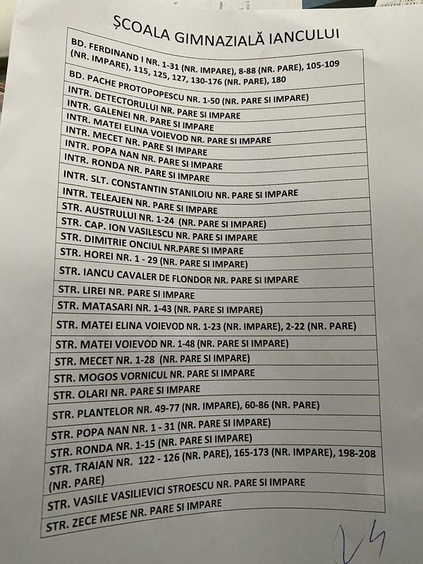 Caut urgent viza flotant pentru inscrierea la scoala Iancului (52). Ofer 100 E. In poza aveti strazile cerute pentru inscriere. Multumesc,