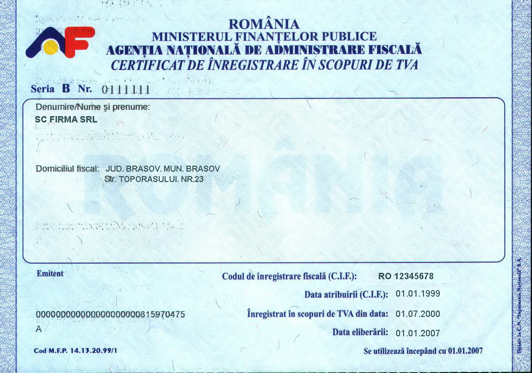 Societatea Amgi Office SRL, cu sediul social in jud. Ilfov, sat Rosu com. Chiajna, str.Razorului, nr.9, inregistrata la Registrul Comertului Bucuresti sub nr. J23/8484/2022, avand CUI 37101225, declara pierdut certificatul de inregistrare in scopuri de TVA cu seria B 1685392.