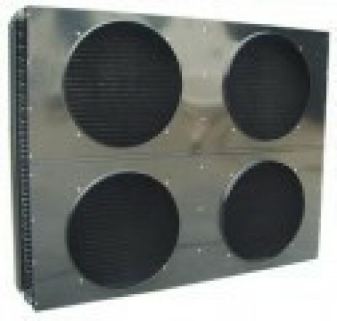 Baterie condensare pentru agregate frigorifice, ventilata, 75000W / + 40*C, dt: 15*C Se livreaza echipata cu patru ventilatoare D500mm alimentate la 230V / 50 Hz, Putere electrica absorbita 250W/buc., Debit total ventilatie: 26000 mc/h. Dimensiuni racord 1+3/8\' - 1+1/8\" (35mm,28mm) Condensatorul frigorific poate fi livrat montat pe sasiu, dotat cu tub colector 16 litri si presostat diferential (+1550 ron). Poate deservi compresoare frigorifice cu debite de pana la 100 mc/h. Produs nou. Contracost asiguram montajul si transportul bateriei de condensare. Garantie 36 luni.