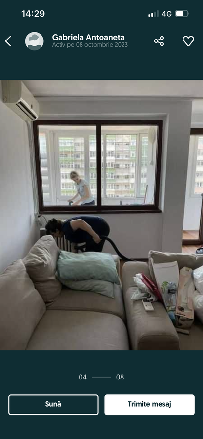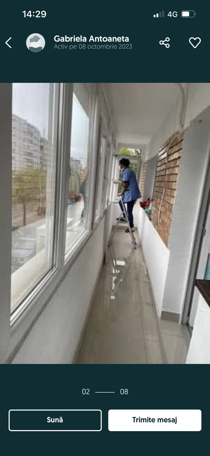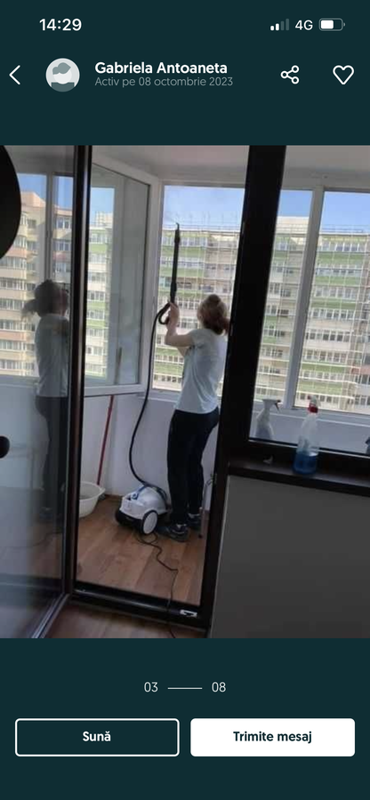 Persoana tanara , dinamica , execut curatenii si servicii calcat haine si facut mancare incepand cu cele mai mici preturi depinde de marimea locului , daca este sa nu multa mizerie si de gavitatea petelor . Mai am o fata colega care ma ajuta la case sau aprtamente mai mari si o pot apela oricand si inca un angajat care ne ajuta dupa renovari unde curatenia este mai grea si mai riguroasa , sunt de carat saci de moloz sau trbuie mutata mobila , el este omul potrivit. pretul il stbilim impreuna la fata locului in momentul cand in momentul cand vad despre ce este vorba...