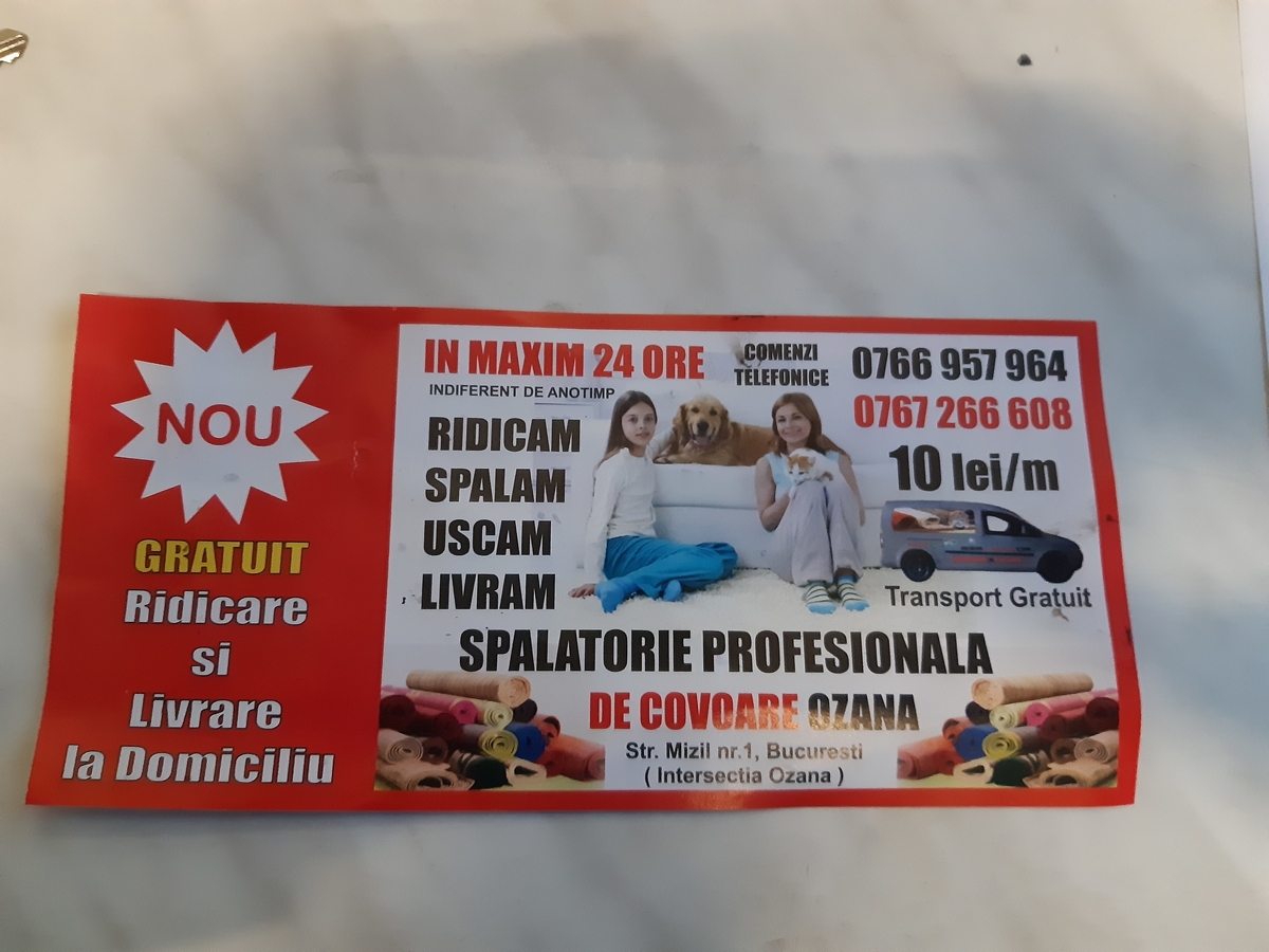ridicam de la domiciliu covoare, mochete. La spalare folosim echipamente profesionale, timpul de livrare fiind de maxim 24 h,