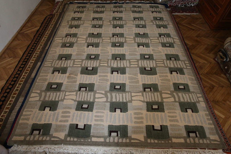 dimensiunea 2,4 x 3,35m. Covoarele sunt tesute din lana vopsita cu culori ecologice, tratata antistatic, antiacarieni. Culorile sunt naturale si placute,