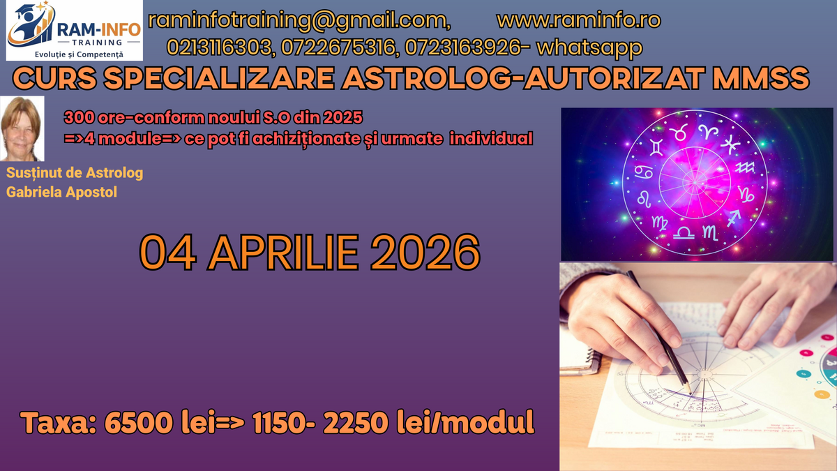 Curs specializare astrolog autorizat MMSS- 300 ore