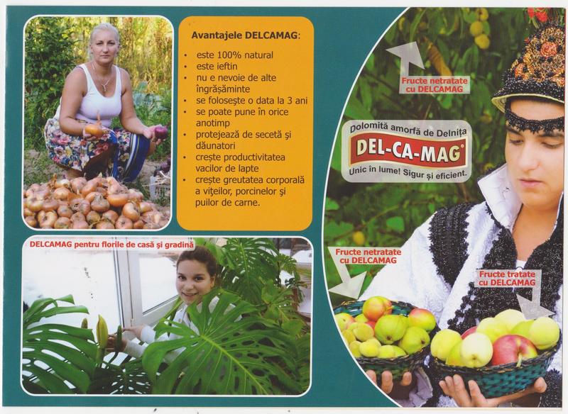 DELCAMAG-ul este un supliment alimentar si amendament, 100% natural, avand la baza calciu si magneziu, nu e nevoie de alte ingrasaminte, se poate pune in orice anotimp, sporeste randamentul culturilor cu 30% , protejeaza de seceta si daunatori, creste productivitatea vacilor de lapte si greutatea corporala a viteilor, porcinelor si puilor de carne.