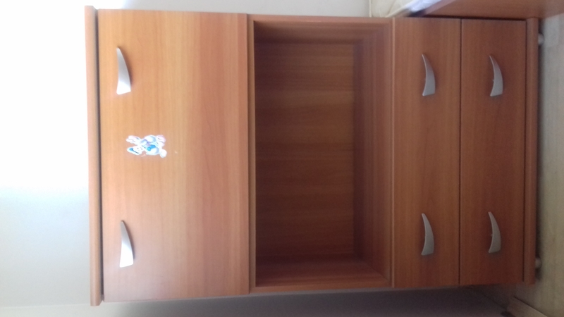 Donez pat mijloc dormitor cu saltea, 2 noptiere si o comoda.