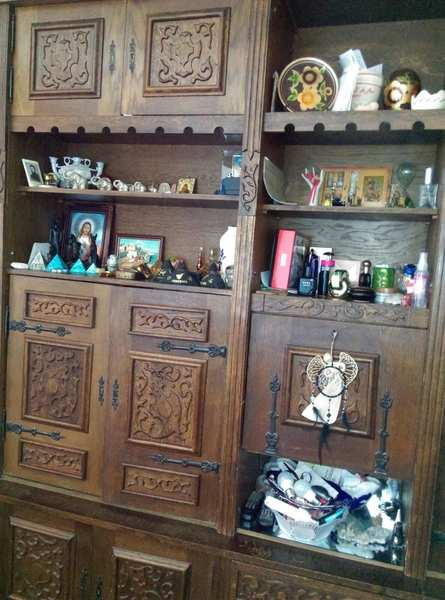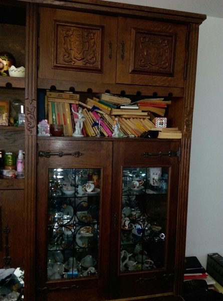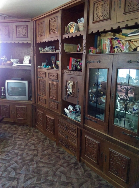 biblioteca, coltar sufragerie (extensibil-2 persoane), canapea extensibila (2 persoane), cadru pat mijloc (nou-nout !)-fara saltea, comoda (dubla).