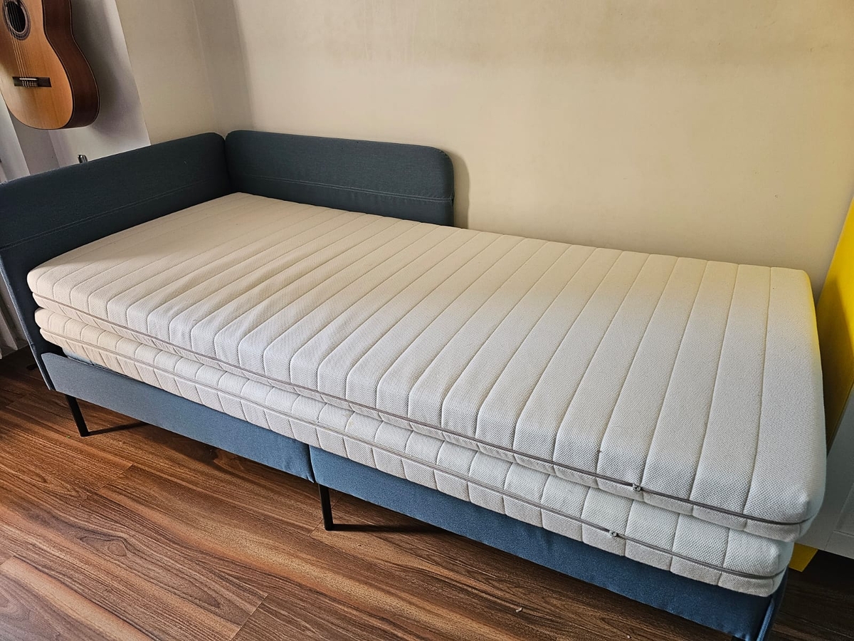 Ikea / pat Kura / pat reversibil, alb/pin, 90x200 cm + Saltea IKEA