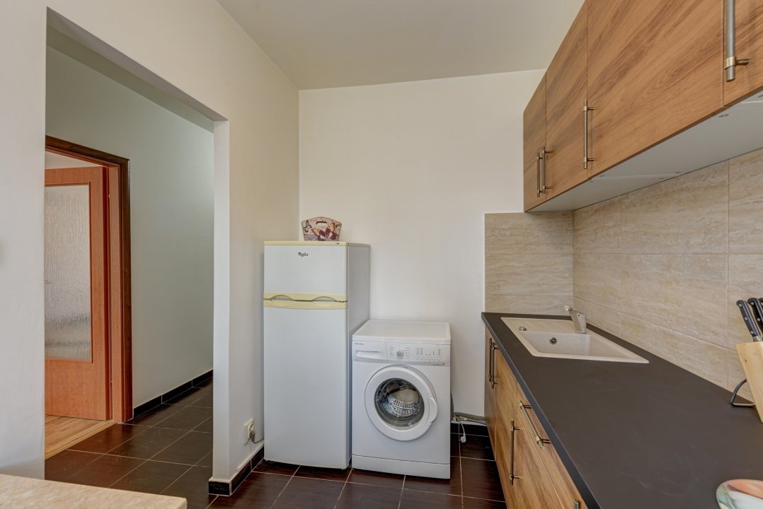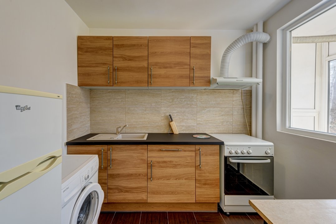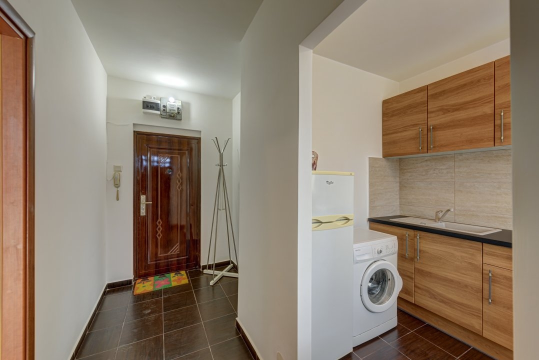 Odata cu renovarea s-a zugravit integral apartamentul, s-au refacut integral finisajele din baie si bucatarie si s-a inlocuit parchetul. Baia este amenajata modern si toate obiectele sanitare sunt noi. Bucataria este mobilata cu mobilier nou si utilata cu aragaz, hota, frigider si masina de spalat rufe. Langa bucatarie este o debara amenajata pentru depozitare.