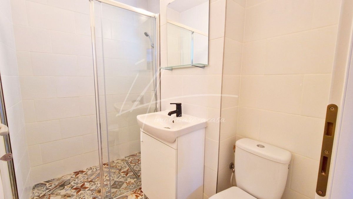 Baia, cu geam si zona distincta pentru dus, este de asemenea eficienta si spatioasa si iti permite tot confortul necesar.