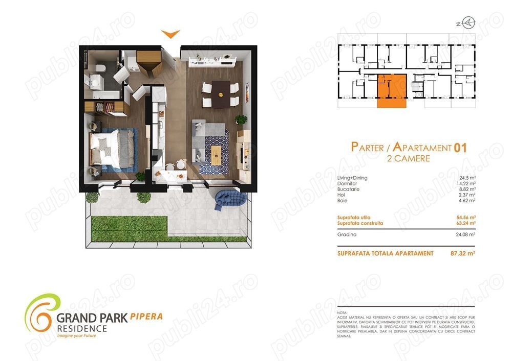 - 1 gradina de 24 mp, cu o terasa generoasa