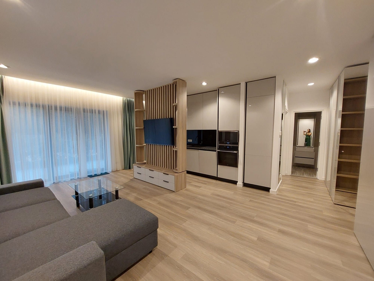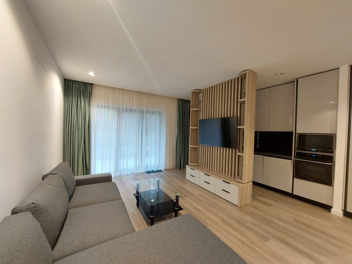 Apartamentul este decomandat, confort lux, situat la parter/4, intr-un bloc nou, cu acces la piscina/sauna/sala fitness, cu o suprafata de 55 mp plus gradina de 24 mp, fiind alcatuit din: