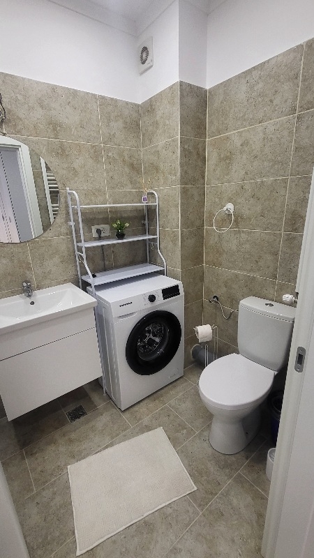 Apartament in bloc nou. Prima inchiriere. 1 luna + 1 luna garantie. 2 min de mers pe jos de centrul comercial Chiajna (supermarket, food court, magazine diverse). 10 min de mers pe jos pana la bazin de inot World Class.