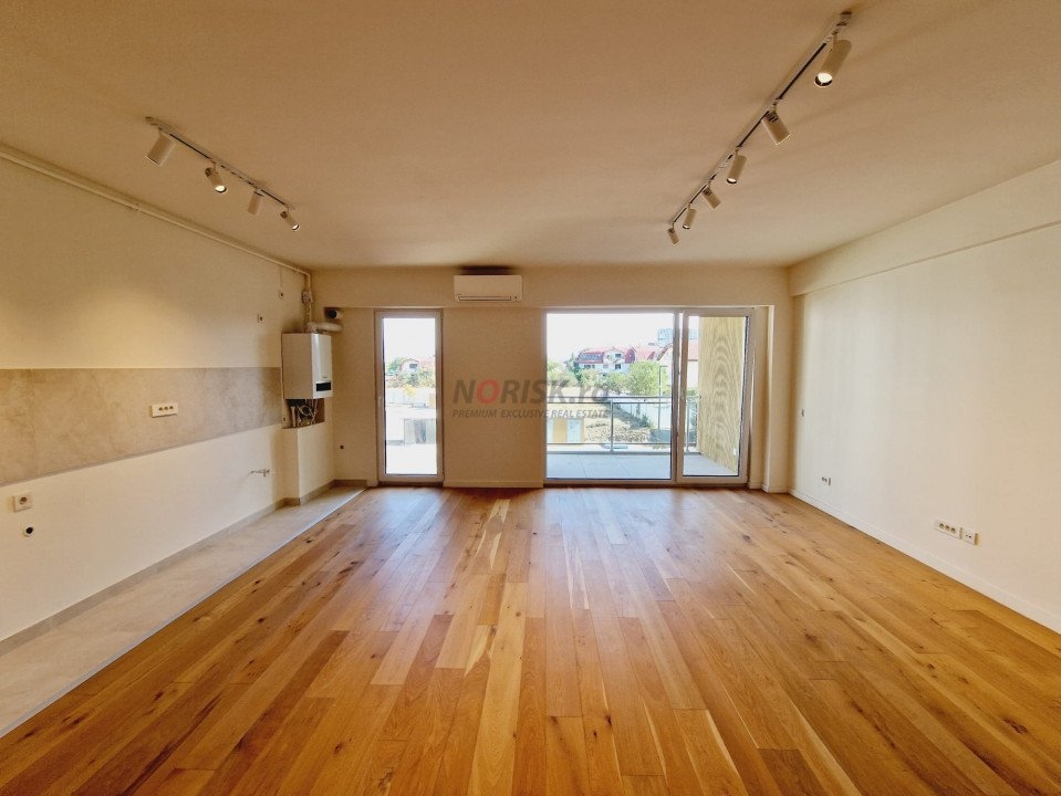 Este un apartament spatios, cu finisaje premium care includ parchet triplustratificat, incalzire in pardoseala pe zone, ceramica Marazzi.
