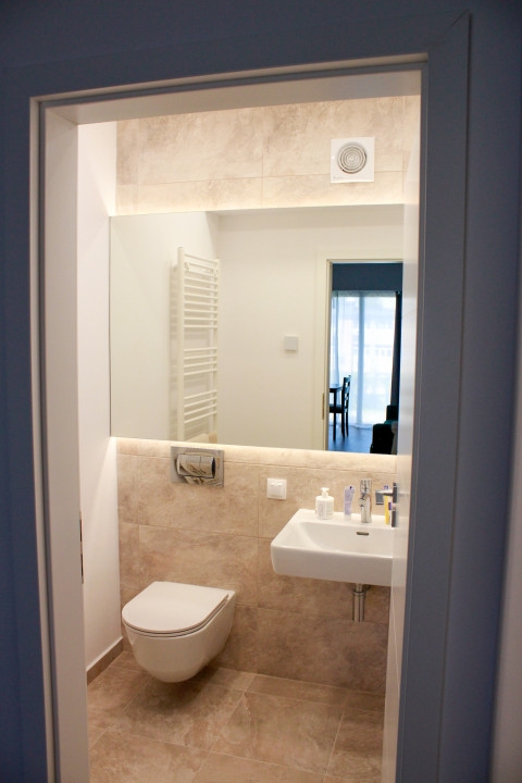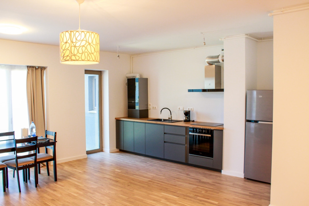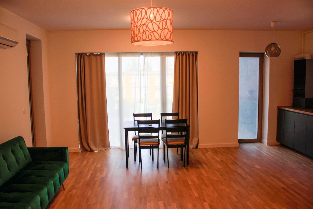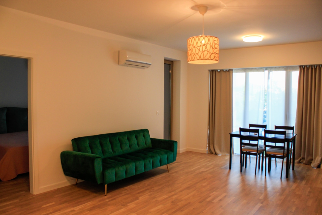 Va propunem spre inchiriere un apartament de doua camere, mobiliat si utilat, doua bai, suprafata 62 mp, etaj 2 din 7, intr-un bloc nou construit, dat in folosinta in 2023, in nordul capitalei, zona Baneasa/ Damaroaia.