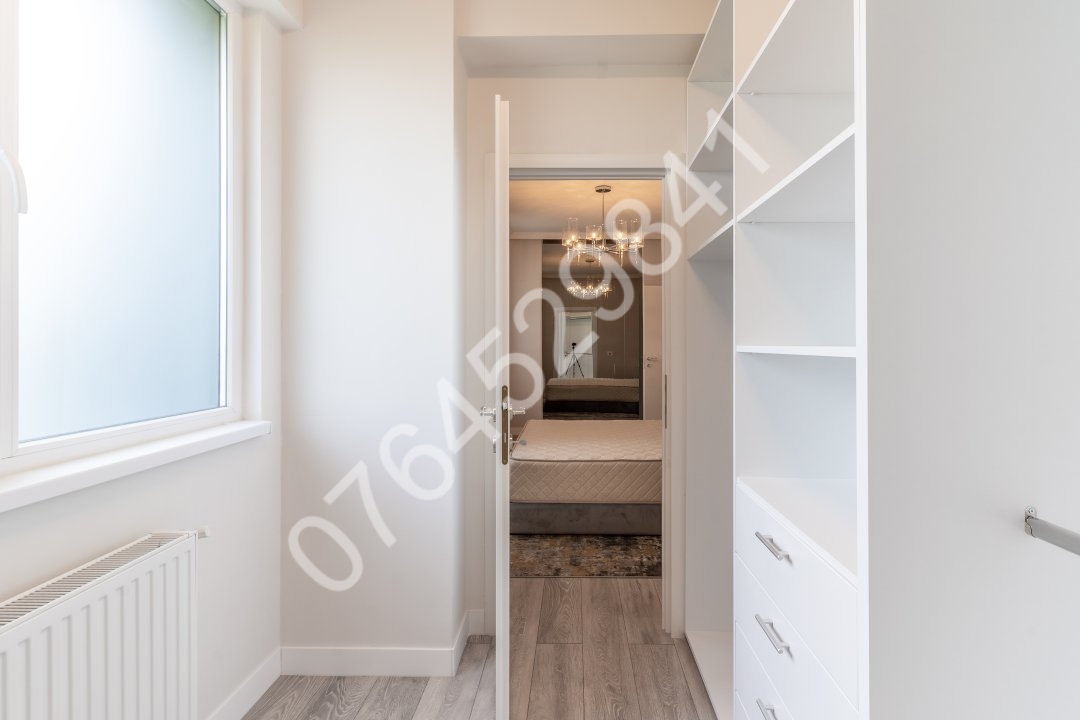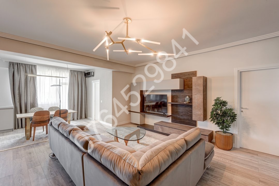 Balcon deschis,centrala termica de apartament,2 aparate de aer conditionat,2 televizoare smart,canapea generoasa tip coltar in living,pat matrimonial in dormitor,dressing tip walk in closet/dressing room,spatii depozitare, plita gaz+cuptor electric+hota+masina de spalat vase+combina frigorifica incorporate,masina de spalat rufe.