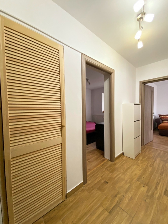 Are suprafata utila de 50 mp +balcon inchis, este decomandat si se inchiriaza complet mobilat si utilat cu aragaz, hota, frigider si masina de spalat haine, masina de spalat vase, cuptor cu microunde. Apartamentul dispune de canapea extensibila in living si pat in dormitor.
