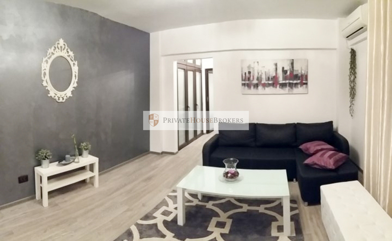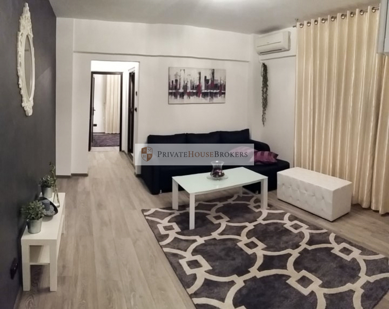 Apartamentul este situat la etajul 1 din 4, are 2 camere, living si dormitor matrimonial, este semidecomandat si are o suprafata totala de 65 mp. Apartamentul este mobilat si utilat complet modern, nou, renovat capital, dispune de aer conditionat, televizor, balcon. In pret este inclus si contractual inregistrat la Administratia Financiara.