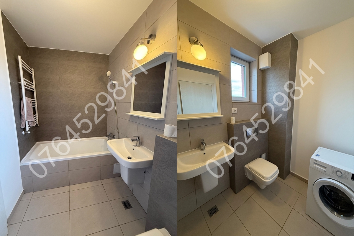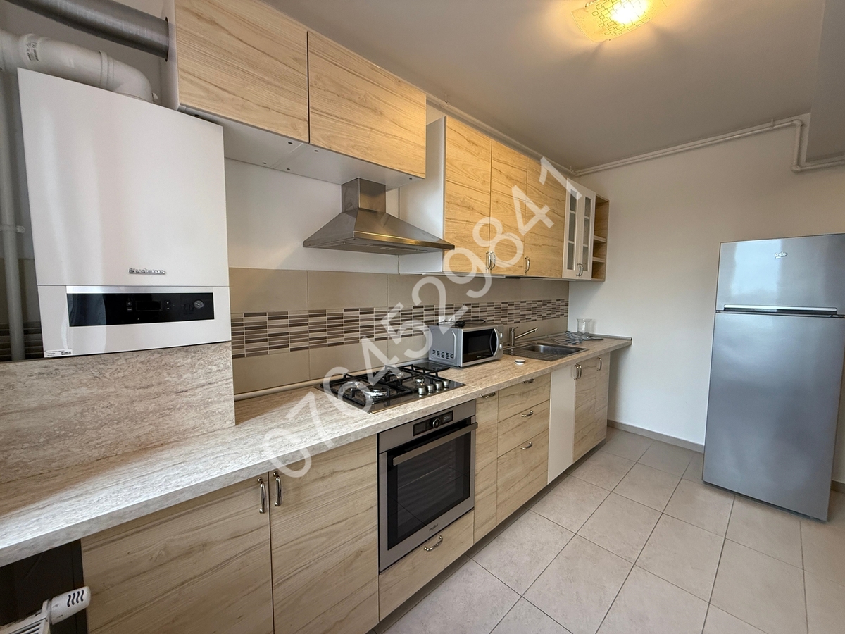 Balcon deschis, centrala termica de apartament, 2 bai (1 baie cu cada+1 baie de serviciu), 2 aparate de aer conditionat, televizor led (la cerere se poate aduce unul smart), canapea extensibila tip coltar in living, pat matrimonial+ dressing generos in dormitor, spatii depozitare, plita pe gaz+ cuptor electric incorporate, hota, cuptor cu microunde, masina de spalat rufe,combina frigorifica.