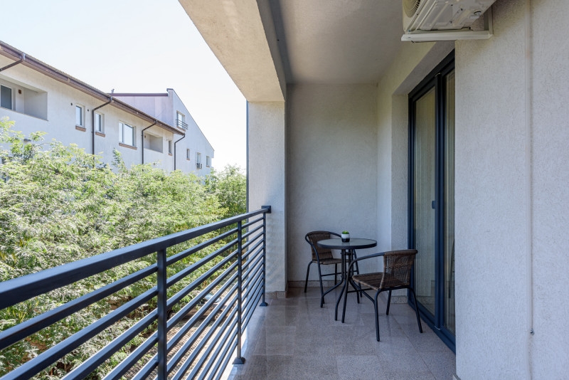 Terasa apartamentului, in suprafata de 8 mp, este amenajata cu masuta si 2 scaune si este spatiul ideal pentru recreere sau servit cafeaua dimineata.