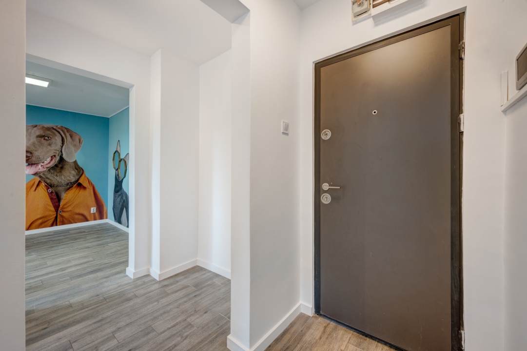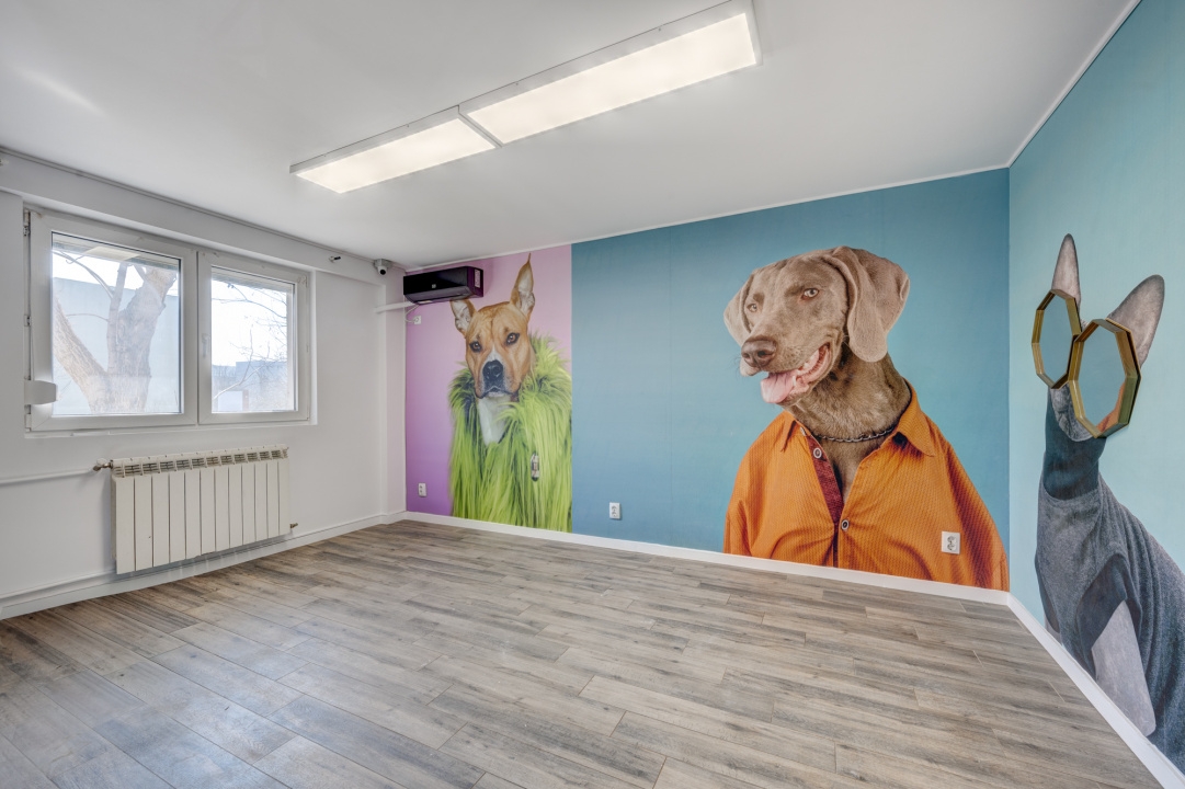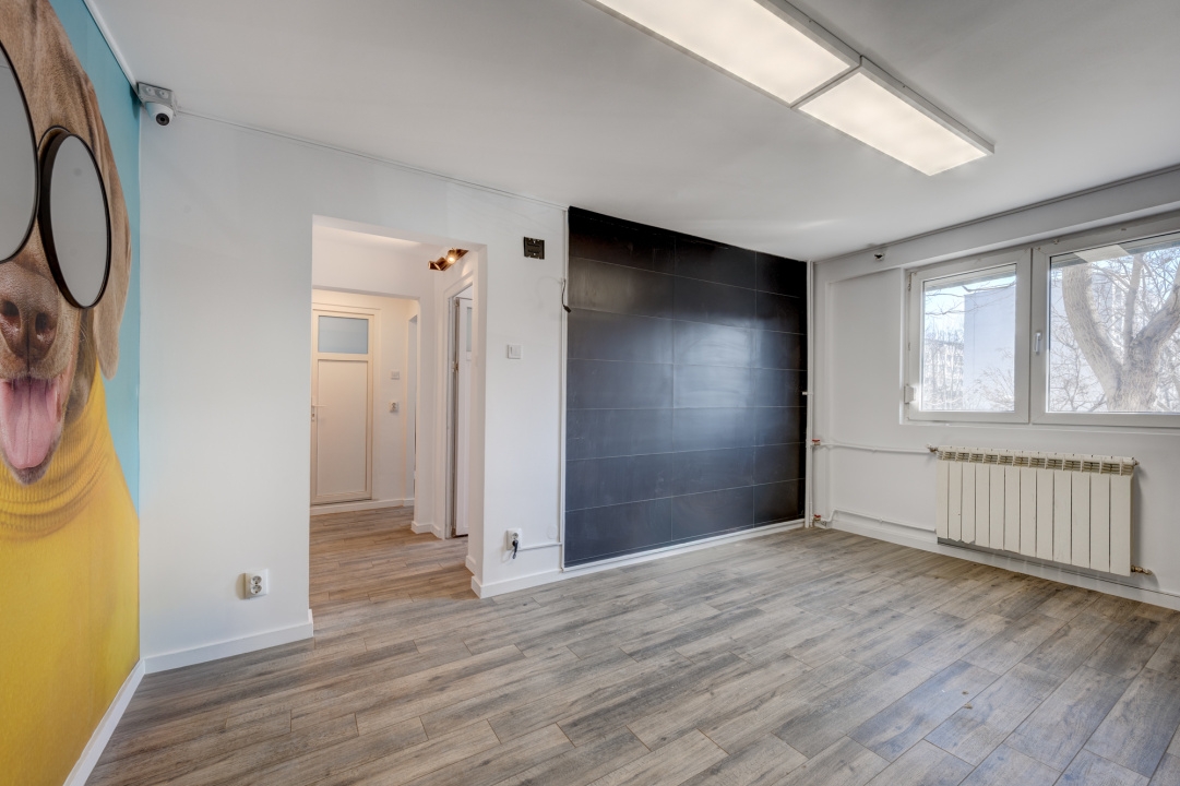 Apartamentul are o suprafata de 36 mp, are 2 camere decomandate, 1 grup sanitar, 1 hol si 1 bucatarie. In spatiu a functionat Cosmetica canina. Spatiul este zugravit si igienziat si in stare foarte buna, are toate ferestrele pvc cu geam termopan si rulouri exterioare la ferestre, toate pardoselile placate cu gresie, usi interioare PVC. Incalzirea este prin termoficare si are calorifere din aluminiu. Este instalat 1 aparat de aer conditionat.