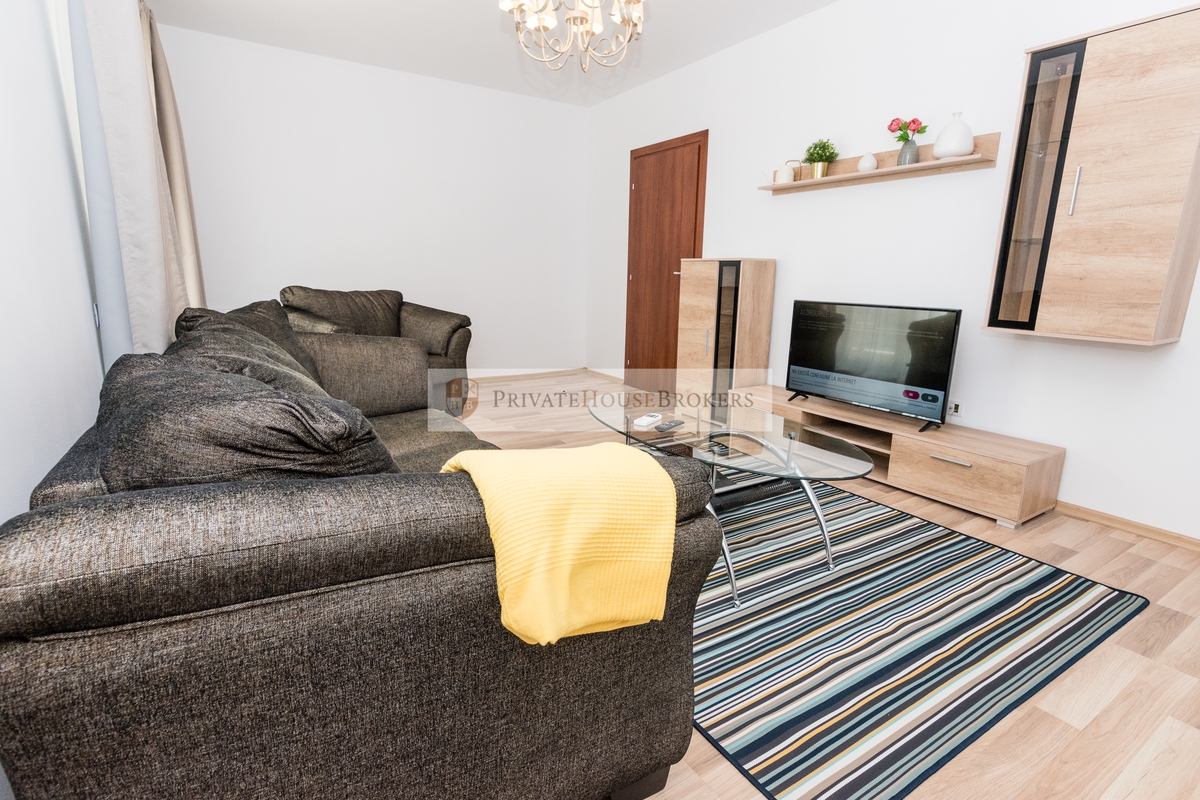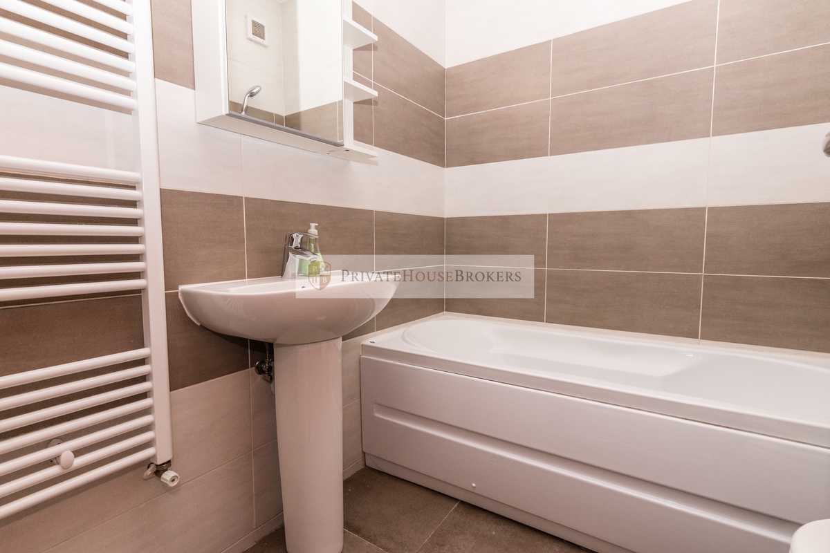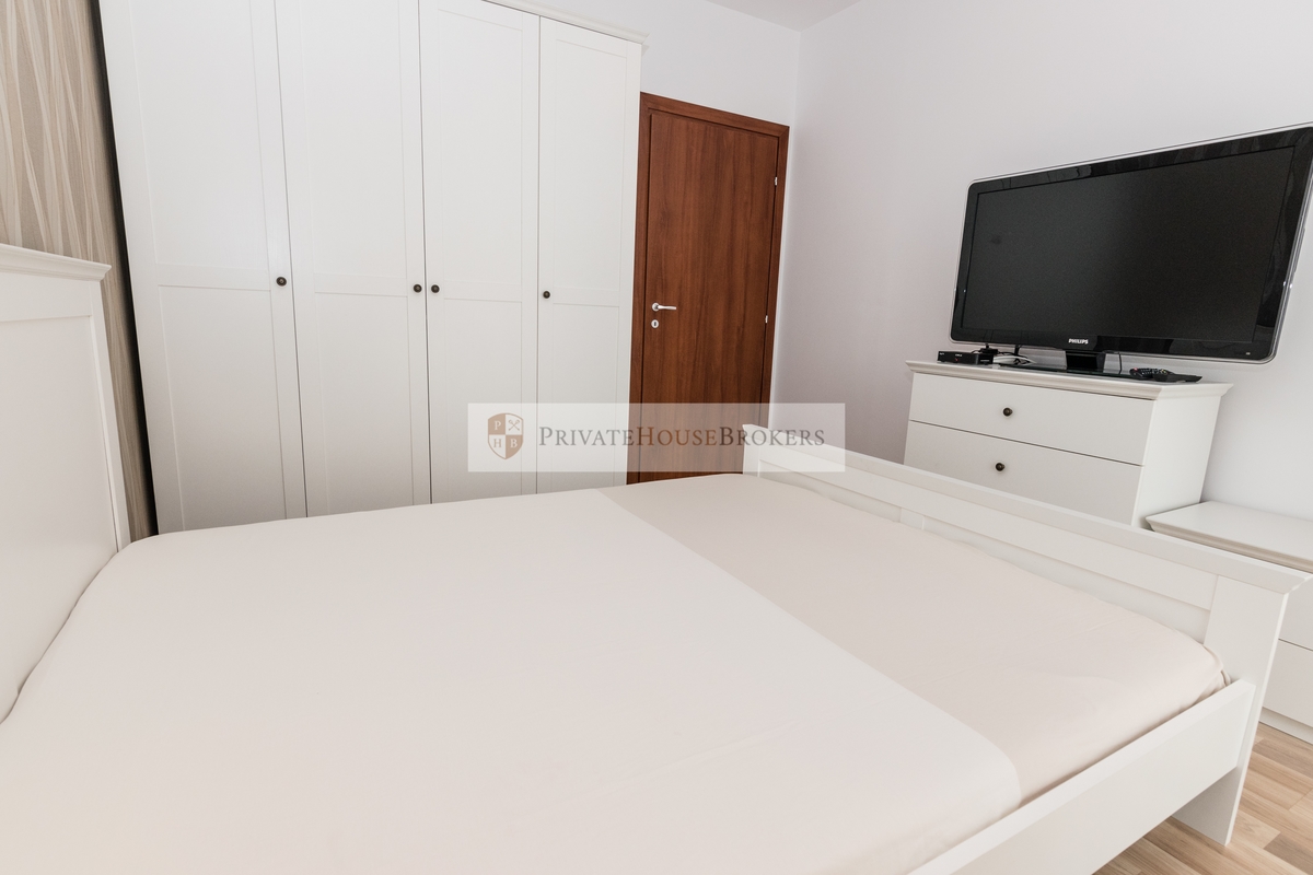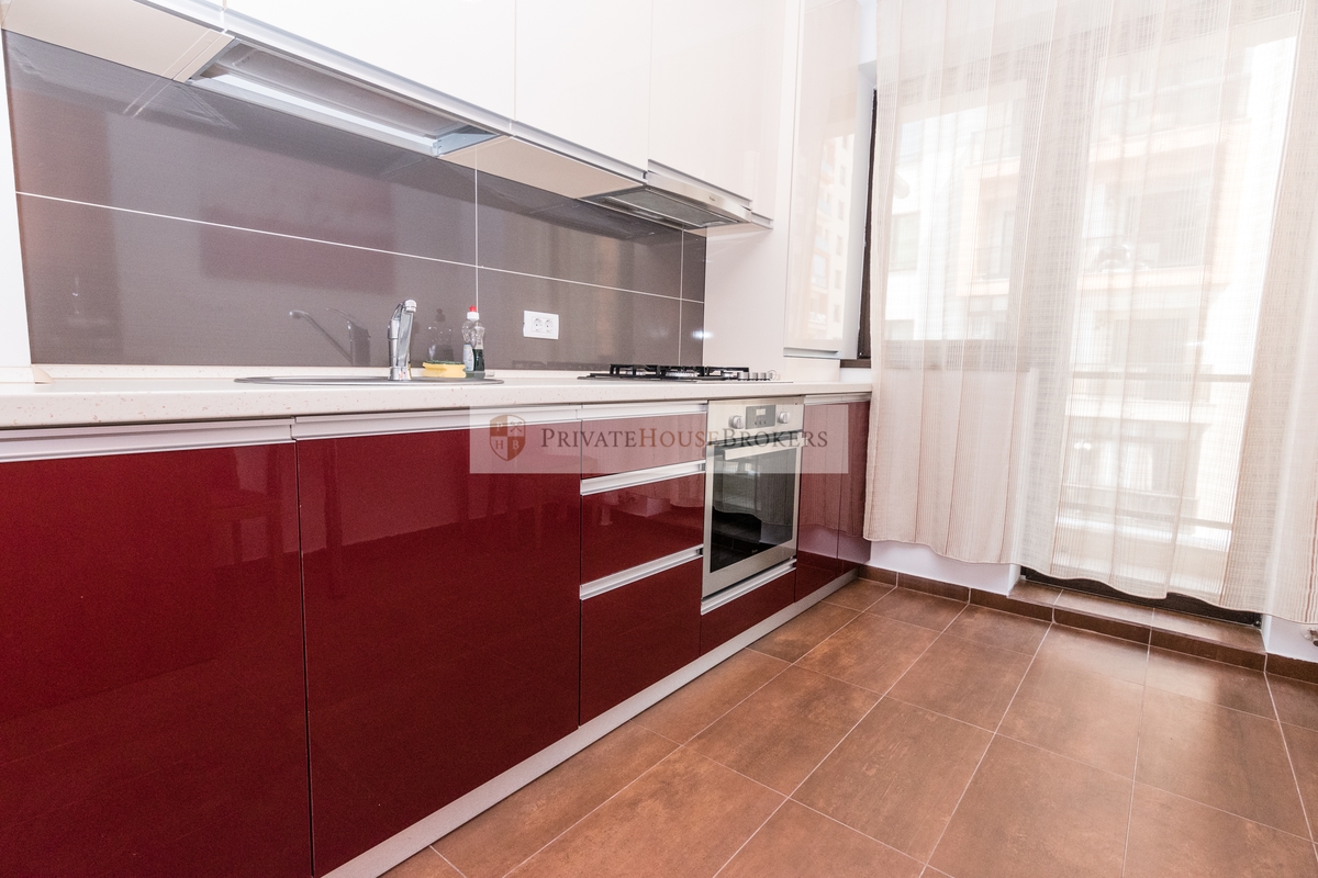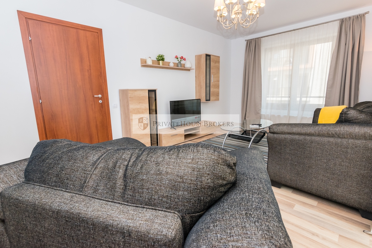 Apartamentul este situat la etajul 5 din 11, are 2 camere, living si dormitor cu pat matrimonial, baie cu cada, 2 balcoane, este decomandat si are o suprafata totala de 67 mp, respectiv 60 mp suprafata utila. Apartamentul este mobilat si utilat complet modern, dispune de centrala proprie de apartament, 2 televizoare, aer conditionat, loc de parcare suprateran. In pret este inclus si contractul inregistrat la Administratia Financiara