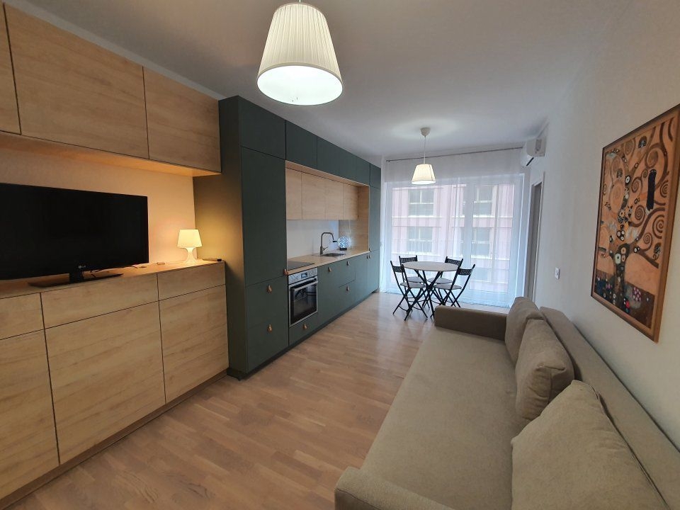 Apartamentul este complet mobilat si utilat cu produse noi si de inalta calitate, asigurand un confort si o experienta placuta. Livingul si bucataria open-space sunt spatioase si luminoase, oferind un loc prietenos pentru petrecerea timpului liber si primirea oaspetilor.