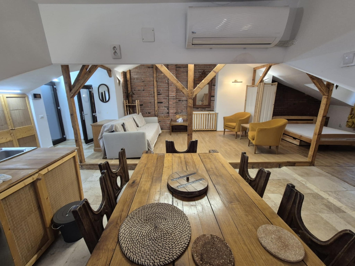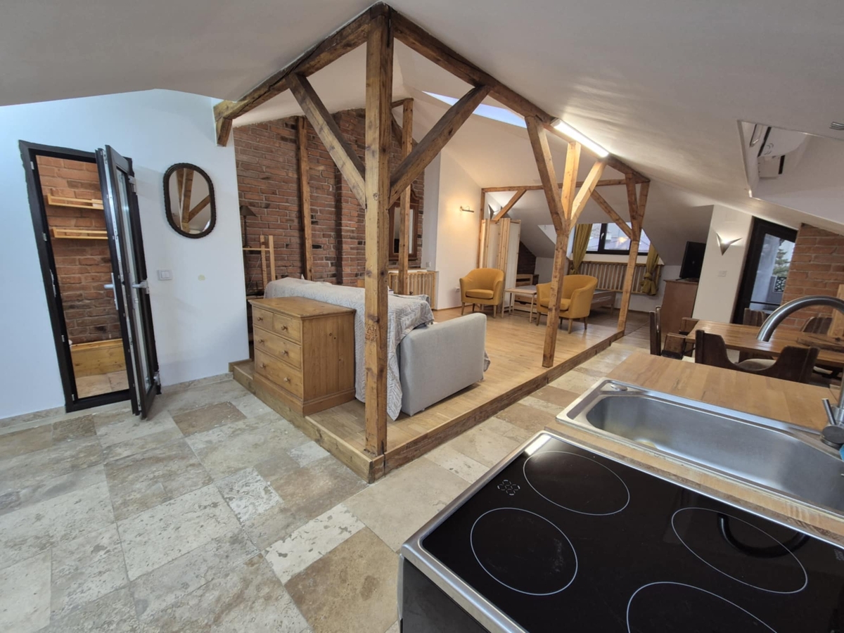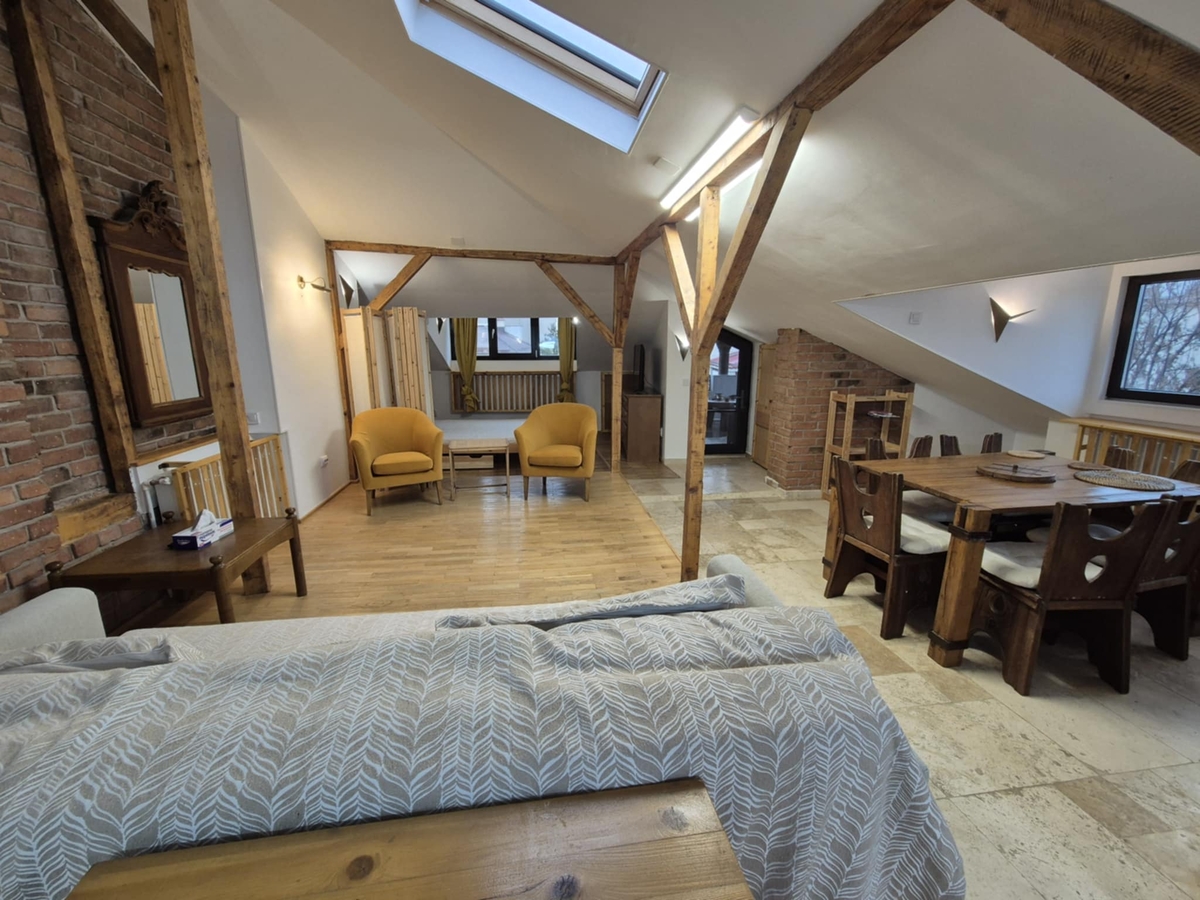 Matei Voievod - Agricultori, de inchiriat apartament tip mansarda opens-space, etaj 2/2 in vila, mobilat si utilat complet, dotat cu centrala termica ce asigura costuri optime pe tot parcusul anului, 2 aere conditionate, este foarte bine izolat pe interior ceea ce ofera o eficienta energetica sporita, suprafata desfasurata de 90 mp dintre care terasa 8 mp, boxa 2 mp la subsol si multiple spatii de depozitare incastrate in pereti de aprox 30 mp. Locatia are si curte ce permite amenajarea unui spatiu personal in special in perioada calduroasa a anului. Zona prezinta multiple puncte de interes cu gradinite/ scoli/ spitale/ restaurante si supermarketuri. Acces rapid catre mijloace de transport in comun cu lagaturi catre orice punct al orasului. Apartamentul este disponibil imediat pentru termen lung si este pet-friendly. Avans 1+1, Comision Agentie 50%, pret 600 euro.