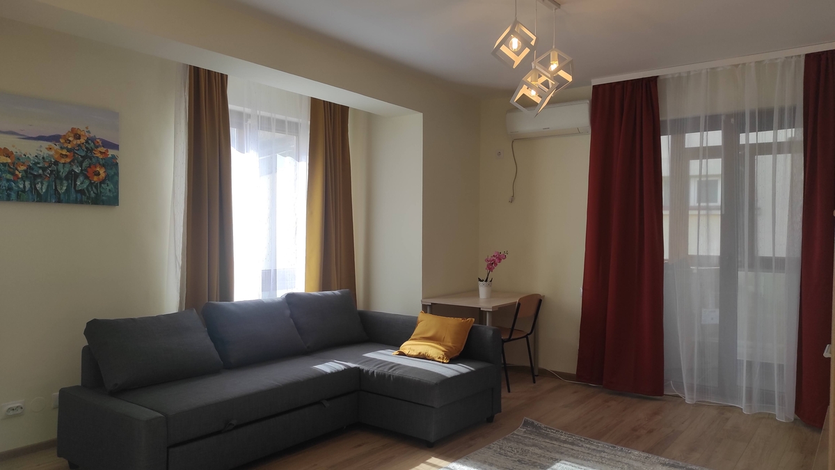 - Living cu coltar extensibila de 3 locuri, mobila, covor, draperii blackout etc