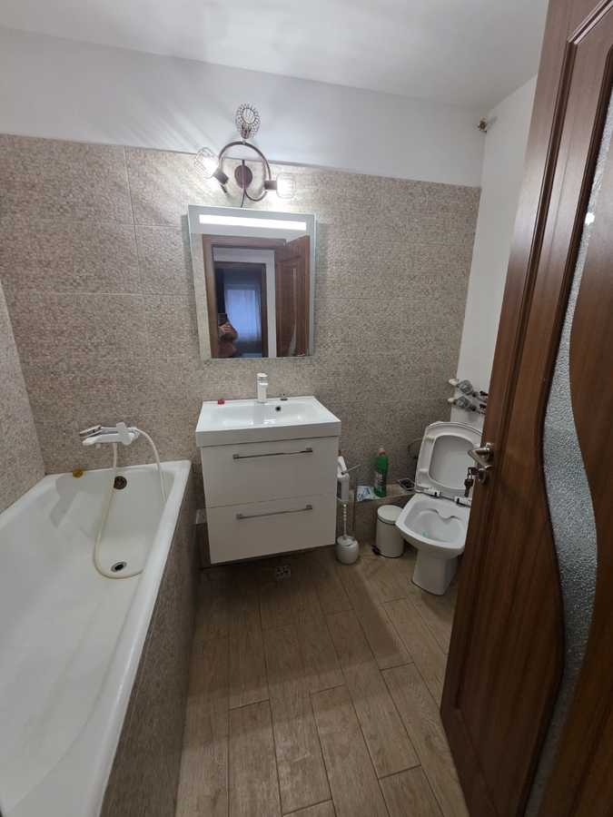 Apartamentul este renovat, mobilat si utilat , are gresie, faianta, parchet, termopane usa metalica.