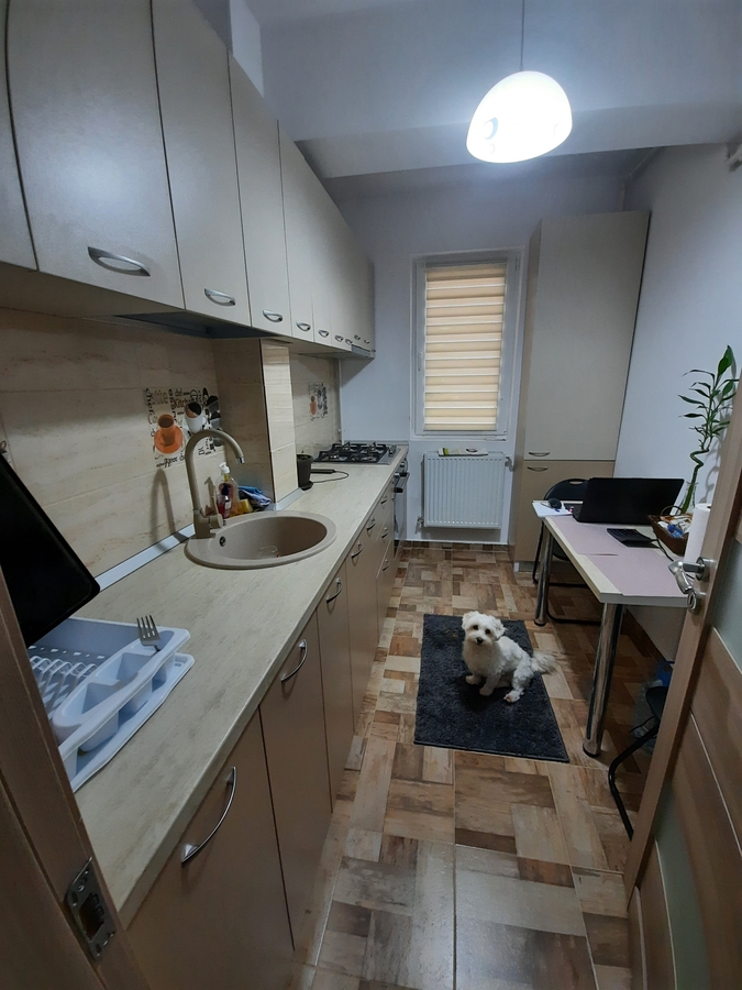 Este spatios, are centrala proprie, aer conditionat, cablu TV, internet,balcon, semimobilat modern, utilat complet cu acces rapid la metrou/tramvai ( la 10 min de statia de metrou 1 Decembrie 1918).